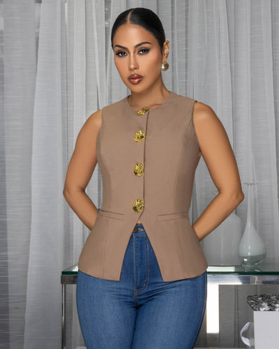 Nerine Mocha Top & Pleated Maxi Skirt Set