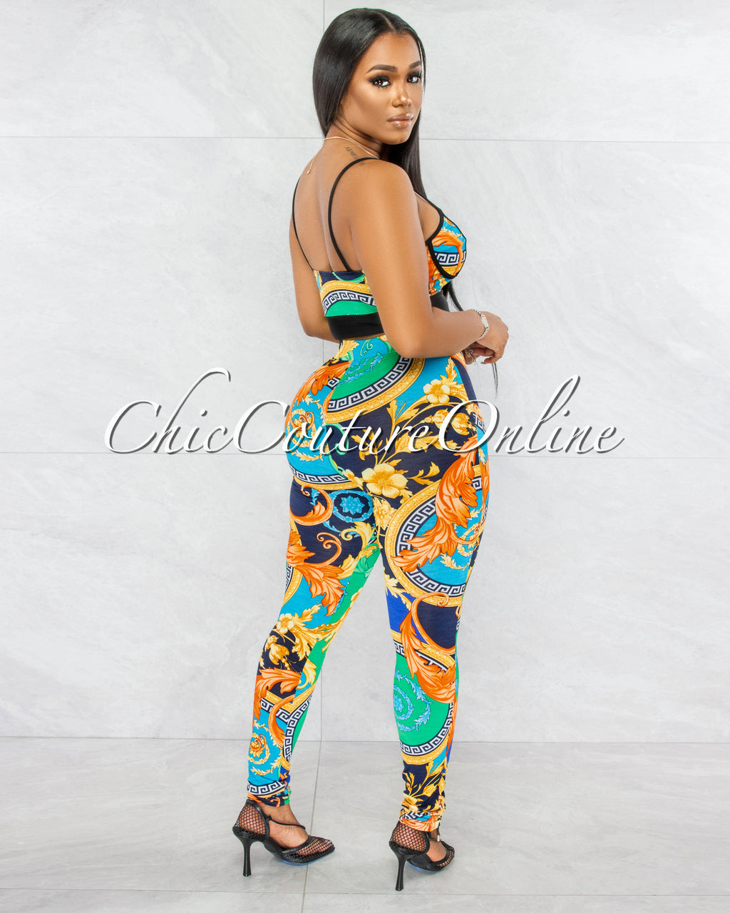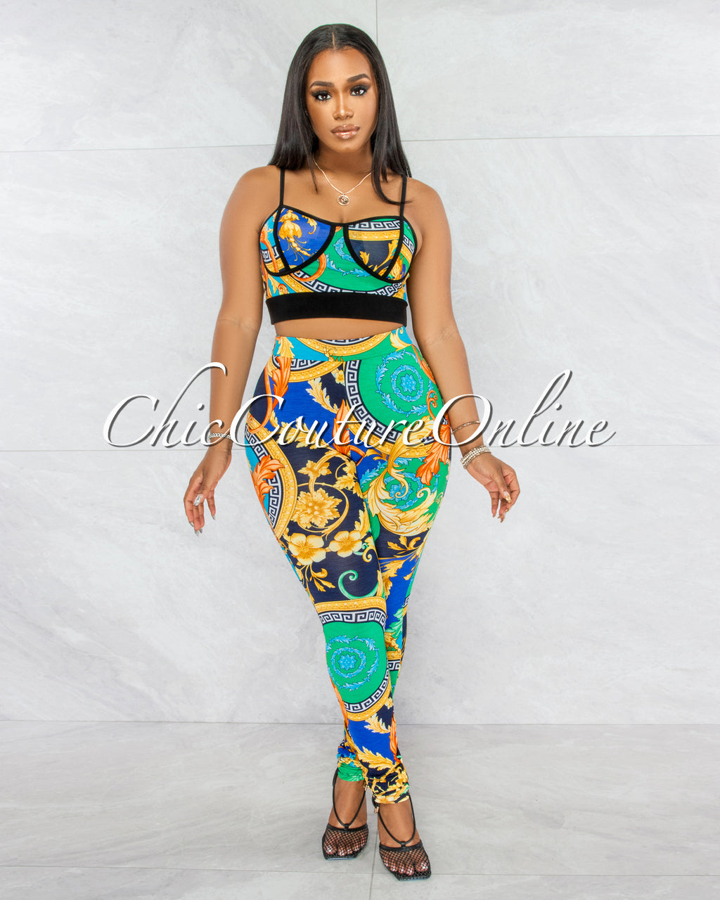 Deborah Green Multi-Color Crop Top & Leggings Set