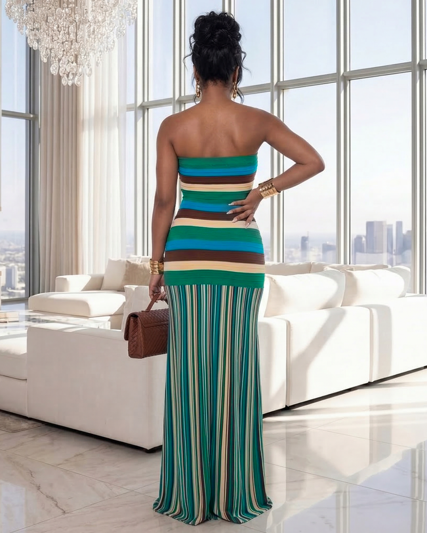Gallene Teal Multi-Color Stripes Knit Maxi Dress