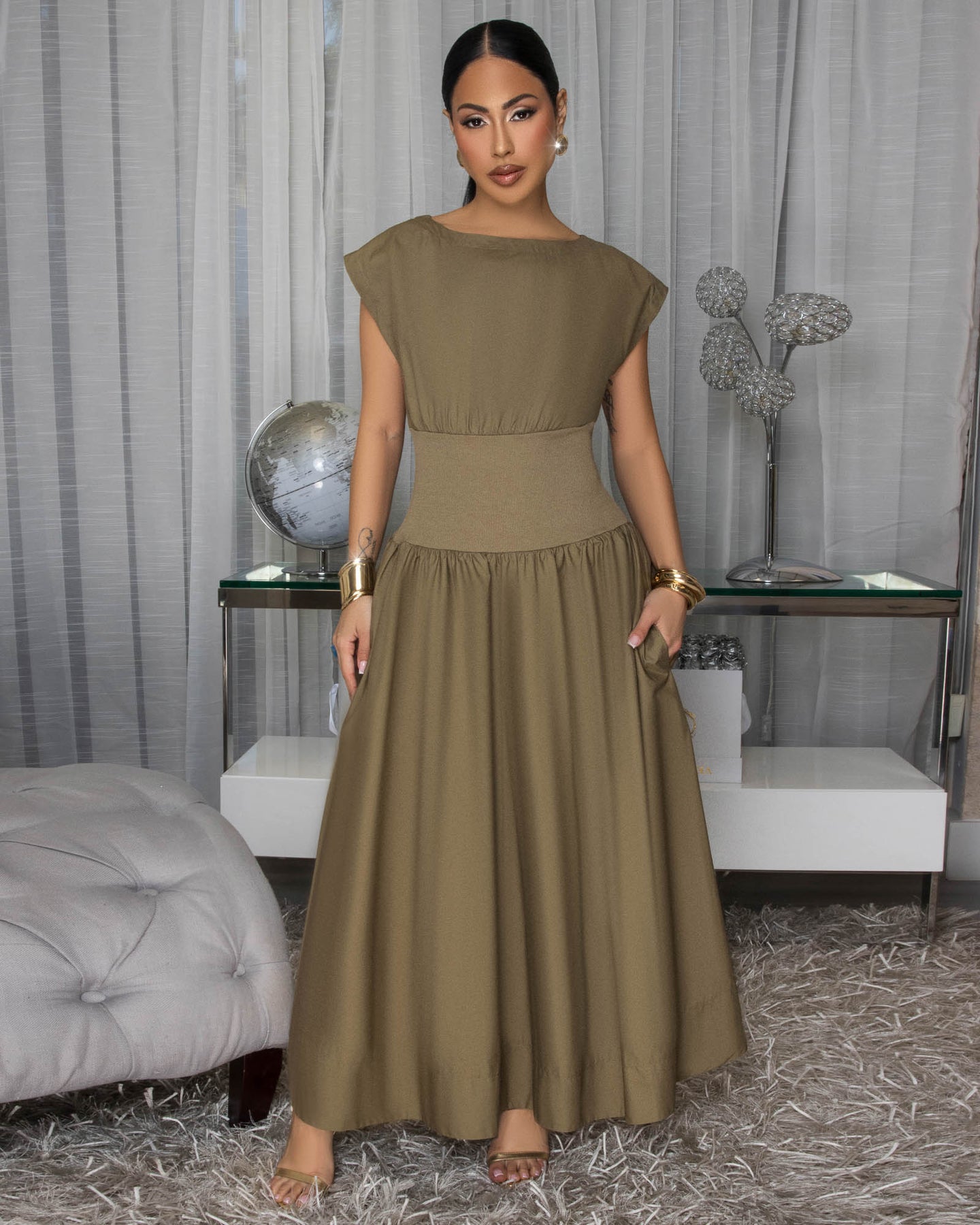 Iman Olive Midi Dress