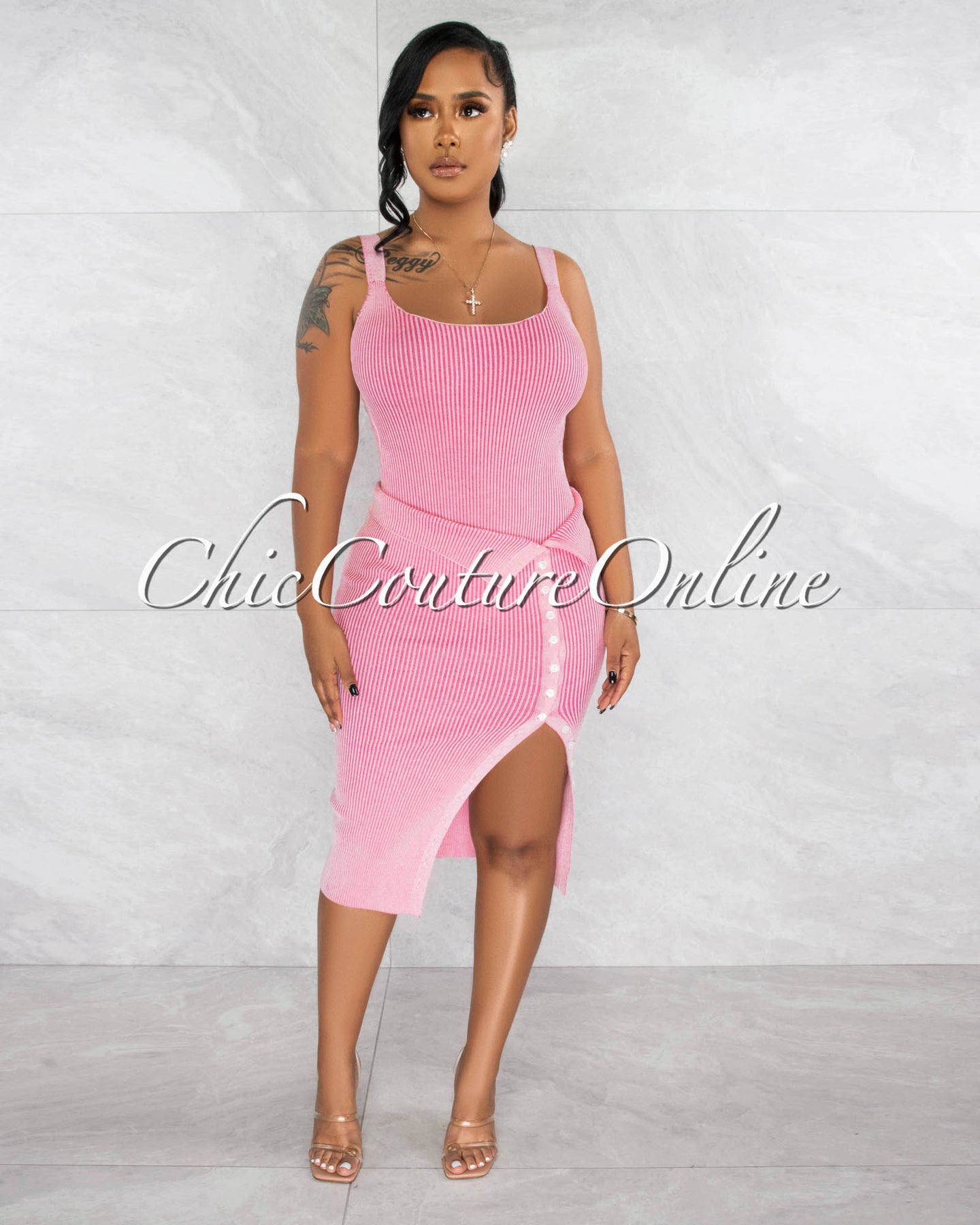 Guerda Pink Ribbed Open Back Bodysuit & Midi Skirt Set